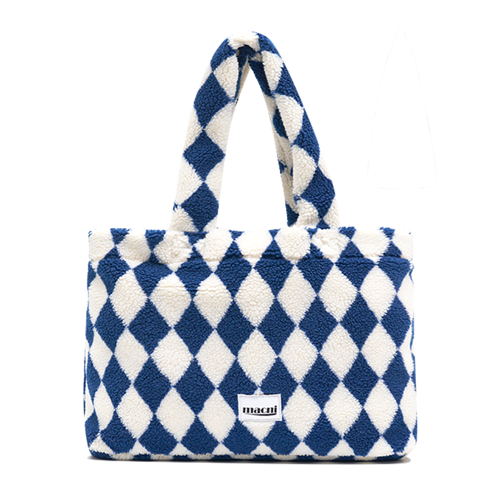 할리 퀸 다이아몬드 패턴이 매력적인 큰 사이즈의 숄더백입니다. 인조 양털로 제작되어 폭신하고 부드러우며  넓은 수납공간, 다양한 포켓이 있어 데일리 또는 여행 시 편리하게 사용할 수 있습니다,