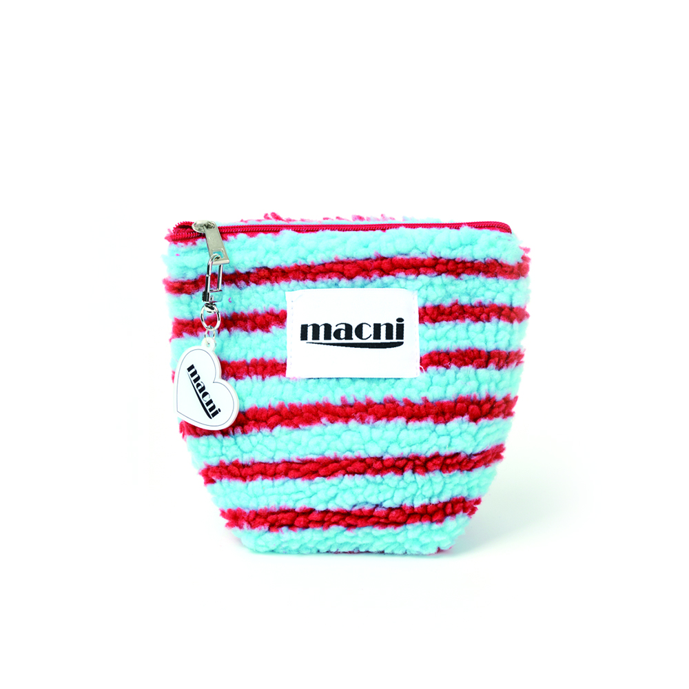 포슬포슬한 뽀글이 스트라이프 원단으로 제작된 스탠디 파우치입니다.