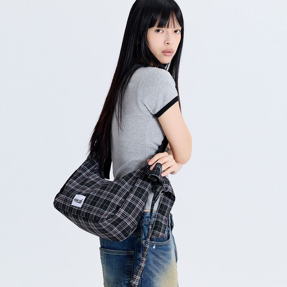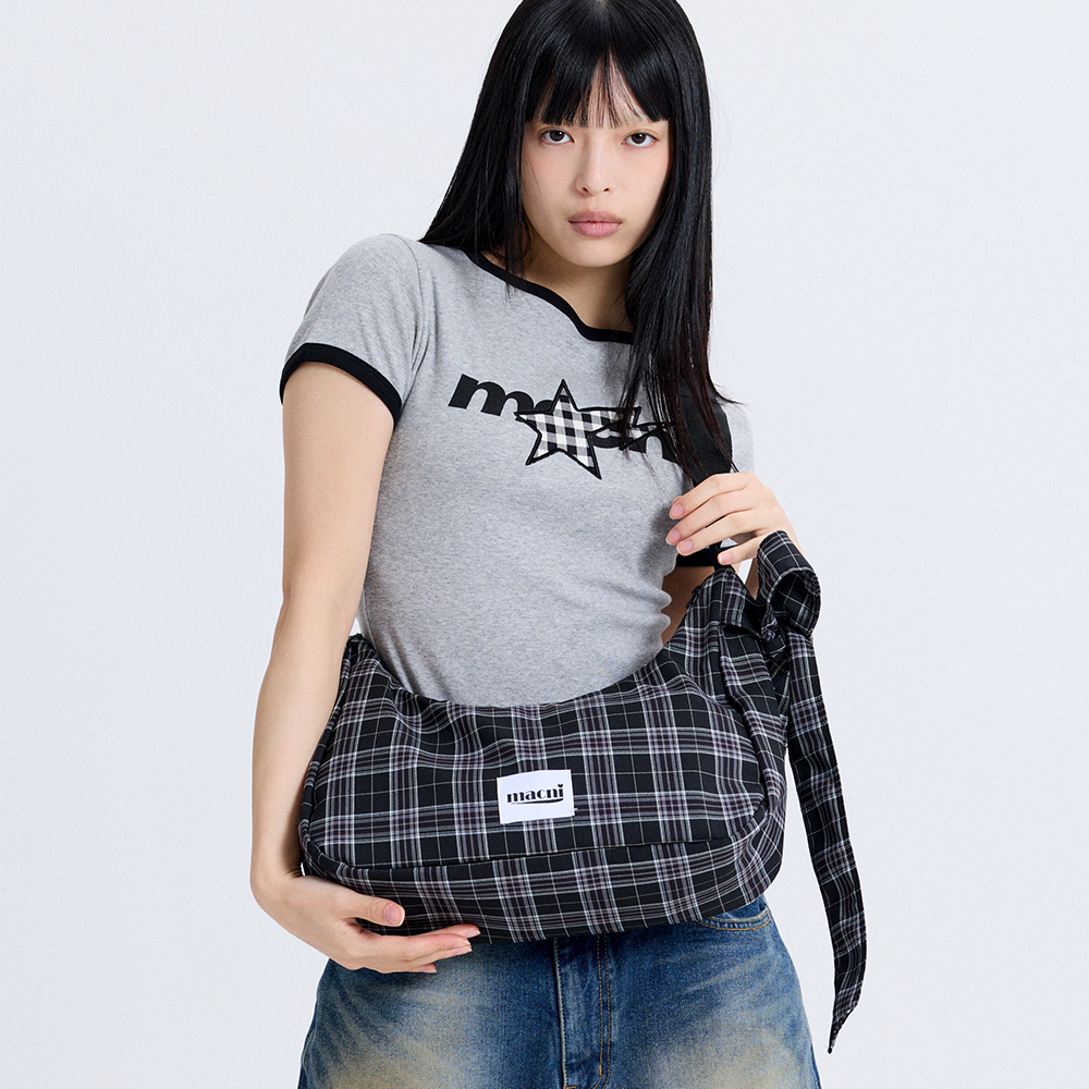 RIBBON CRESCENT CROSS BAG BLACK CHECKNEWSALE